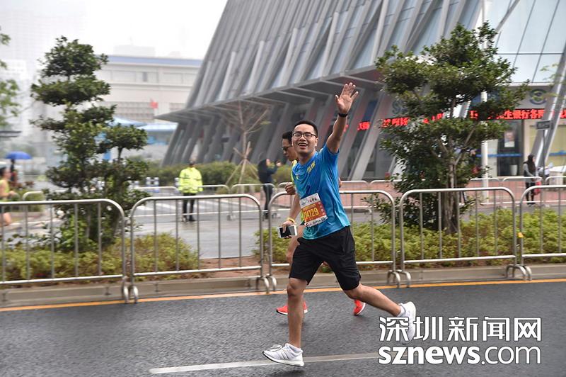 2018年12月16日訊(記者楊浩瀚)2018年12月16日,深圳國際馬拉松位于后海的折返點,一名選手向鏡頭招手。