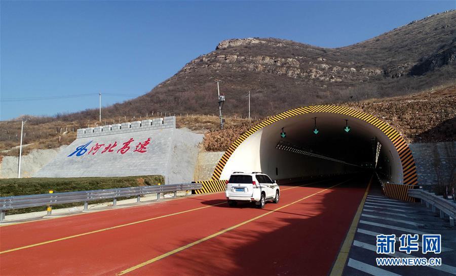12月16日,一輛汽車(chē)行駛在京秦高速公路二期工程河北玉田境內(nèi)的鳳凰頂隧道路段(無(wú)人機(jī)拍攝)。
