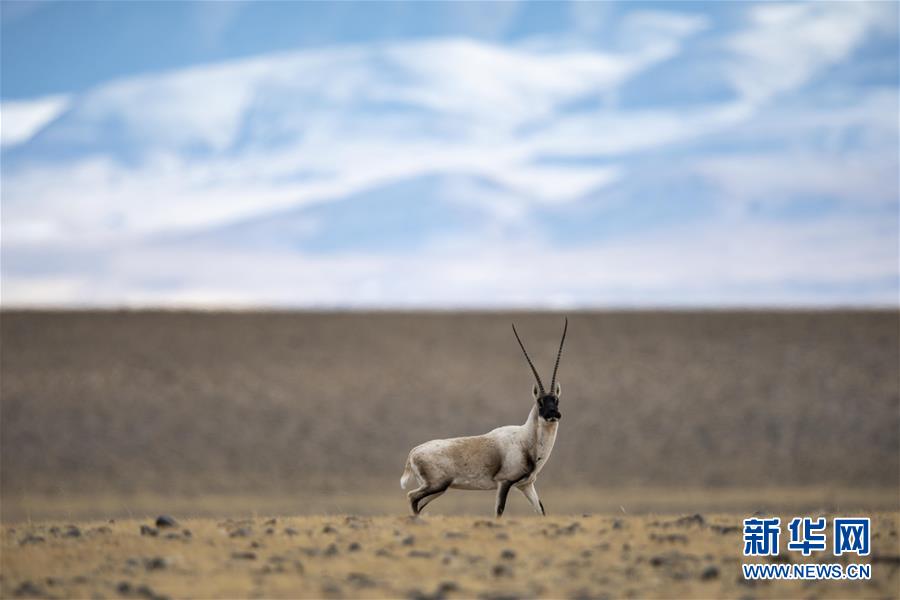 一只藏羚羊在西藏羌塘國家級(jí)自然保護(hù)區(qū)的原野上活動(dòng)(12月14日攝)。 新華社記者 張汝鋒 攝