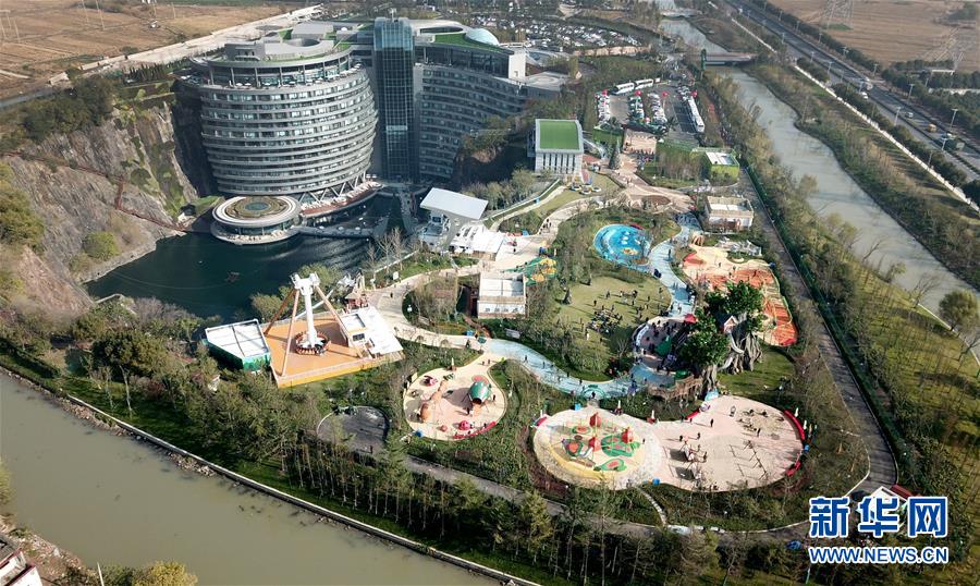 12月18日無(wú)人機(jī)拍攝的世茂精靈之城主題樂(lè)園。 當(dāng)日,“世茂精靈之城主題樂(lè)園奇幻親子嘉年華開(kāi)幕暨上海公益基地揭牌儀式”在位于上海佘山國(guó)家旅游度假區(qū)的世茂精靈之城主題樂(lè)園一期(“深坑秘境”)正式啟動(dòng)?!吧羁用鼐场迸徤虾Y苌绞烂揠H酒店,除了擁有俯瞰“深坑”的玻璃棧道外,還包括360度崖壁大擺錘、精靈樹(shù)屋、沙漠考古、夢(mèng)幻水域和蟲(chóng)蟲(chóng)世界等項(xiàng)目,帶來(lái)親子游玩新體驗(yàn)。 新華社記者 方喆 攝