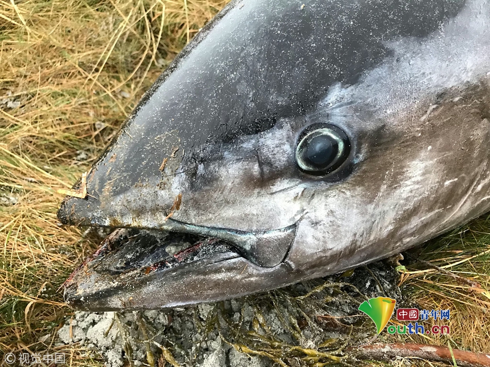 比人還大!狂風(fēng)暴雨后2米長巨型藍(lán)鰭金槍魚擱淺沙灘