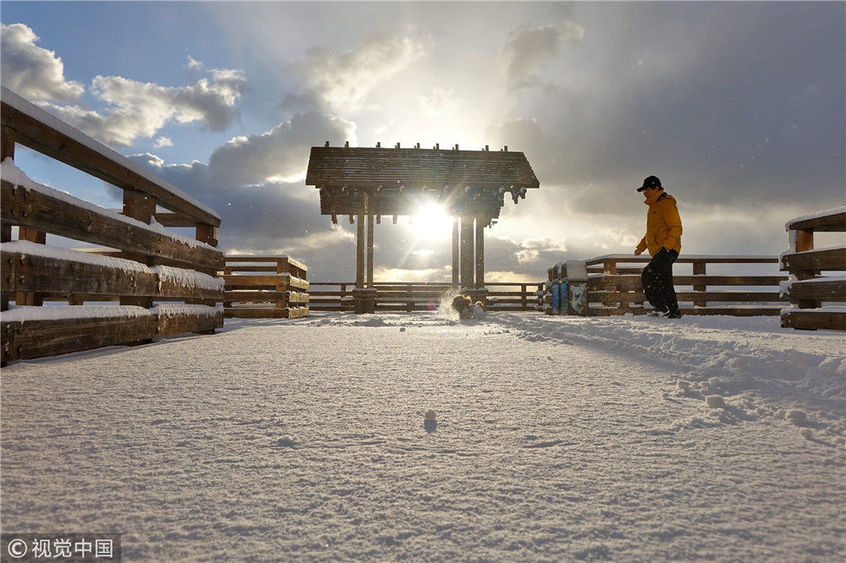 2018年12月7日,山東煙臺,雪后的海濱景色。