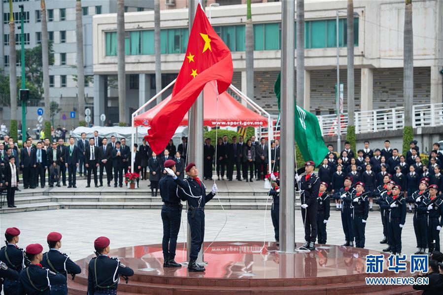 12月20日,澳門特別行政區(qū)政府在澳門金蓮花廣場舉行升旗儀式,慶祝澳門回歸祖國19周年。 新華社記者 張金加 攝