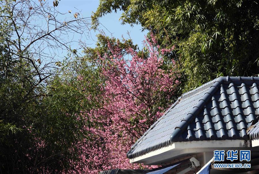 這是昆明市西山區(qū)一小區(qū)內盛開的櫻花(12月21日攝)。新華社記者楊宗友攝