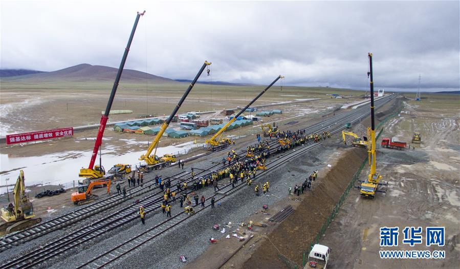 這是2017年7月26日無(wú)人機(jī)拍攝的青藏鐵路格爾木至拉薩段擴(kuò)能改造工程唐古拉車(chē)站撥接工作現(xiàn)場(chǎng)。 新華社記者 劉東君 攝