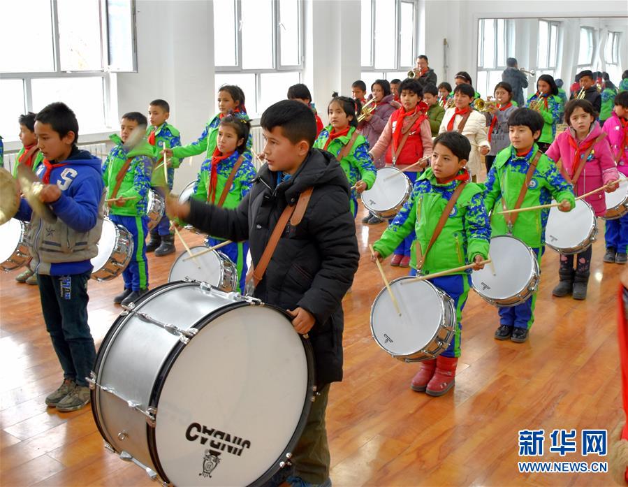 烏什·衢州小學(xué)鼓號(hào)隊(duì)成員在訓(xùn)練(12月19日攝)。