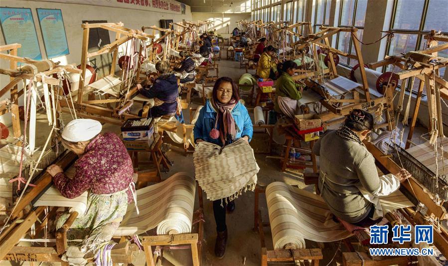 12月25日,在衡水市冀州區(qū)一家老粗布生產(chǎn)企業(yè),田園棉手織粗布傳承人(左)在指導村民織布。 2018年以來,河北省衡水市冀州區(qū)依托當?shù)氐氖〖壏沁z田園棉手織粗布技藝資源,采取“非遺+扶貧”的模式,通過非遺傳承人開展技能培訓、老師傅傳幫帶等,讓貧困村民在傳承非遺文化的同時學習傳統(tǒng)技藝,助力脫貧致富。 新華社記者 李曉果 攝