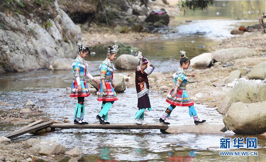 烏英苗寨的姑娘身著節(jié)日服裝,歡度春節(jié)(2月17日攝)。