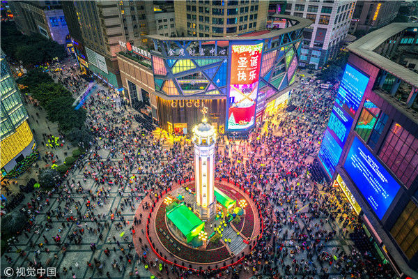 2017年12月31日晚,重慶市渝中解放碑步行街,10萬人齊聚解放碑,歡歡喜喜度過2018跨年夜。每年重慶的跨年夜,人們都會齊聚解放碑,縱觀國內(nèi)大城市的跨年夜,極少有哪座城市有重慶這么熱鬧,這已經(jīng)成為中國城市中最有特色的跨年活動之一。解放碑作為重慶最具標(biāo)志性的建筑之一,可謂意義非凡。雖然周邊建筑越來越高,使相形之下的解放碑顯得越來越小,但依然撼動不了解放碑在重慶人民心畝中的地位。