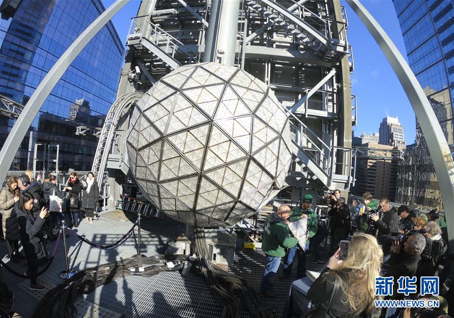 這是12月27日在美國(guó)紐約時(shí)報(bào)廣場(chǎng)拍攝的水晶球安裝現(xiàn)場(chǎng)。 每年12月31日晚,紐約時(shí)報(bào)廣場(chǎng)都會(huì)舉辦跨年慶典,當(dāng)午夜鐘聲響起之時(shí),水晶球緩緩落下,慶祝新的一年到來(lái)。 新華社記者 張墨成 攝