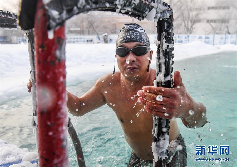 當(dāng)日,新疆烏魯木齊戶外氣溫接近零下20攝氏度,許多冬泳愛好者不懼嚴(yán)寒,來(lái)到烏魯木齊紅山游泳中心戶外泳池進(jìn)行冬泳運(yùn)動(dòng),鍛煉身體,磨練意志。