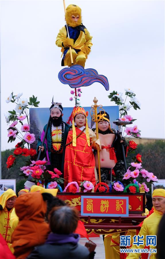 1月1日在展演活動(dòng)上拍攝的“抬閣”表演。2019年元旦,浙江省桐鄉(xiāng)市濮院鎮(zhèn)舉辦新年“非遺文化藝術(shù)節(jié)”活動(dòng),濮院鎮(zhèn)下屬多個(gè)鄉(xiāng)村的傳統(tǒng)美食制作、手工藝品、非遺文化表演等鄉(xiāng)村特色非遺項(xiàng)目在濮院鎮(zhèn)中心廣場進(jìn)行集中展示展演。新華社記者 徐昱 攝