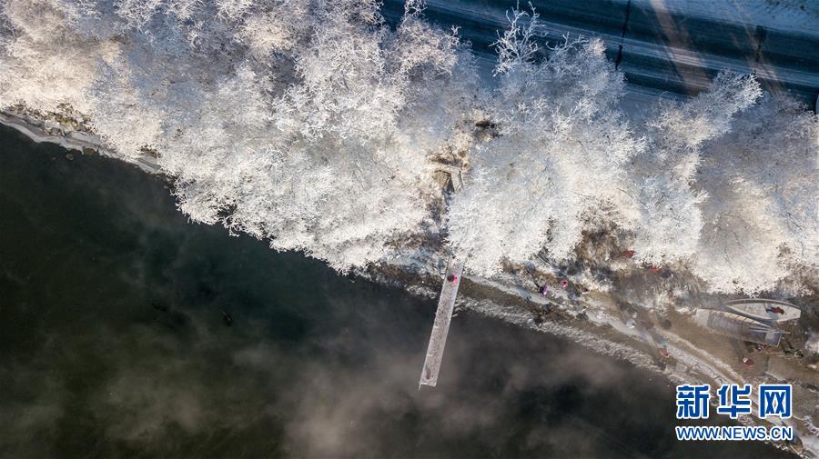 這是在吉林省吉林市豐滿區(qū)吉豐東路松花江畔拍攝的霧凇美景(12月12日無人機拍攝)。  新華社記者張楠攝