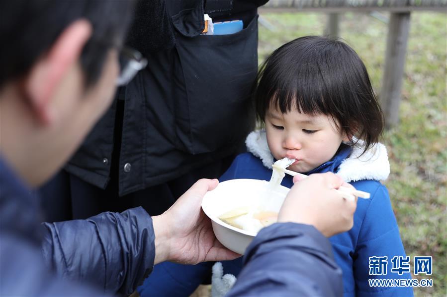 1月12日,在日本東京,一名兒童在家長(zhǎng)的協(xié)助下?lián)v年糕。