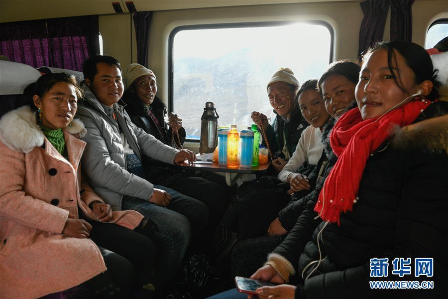 春運臨近,西藏鐵路客流逐漸增大。從拉薩發(fā)往西寧的中國鐵路青藏集團公司西寧客運段Z6802次旅客列車滿載著游客、務(wù)工人員、學(xué)生、朝佛信眾等,穿梭在白雪皚皚的高原上。