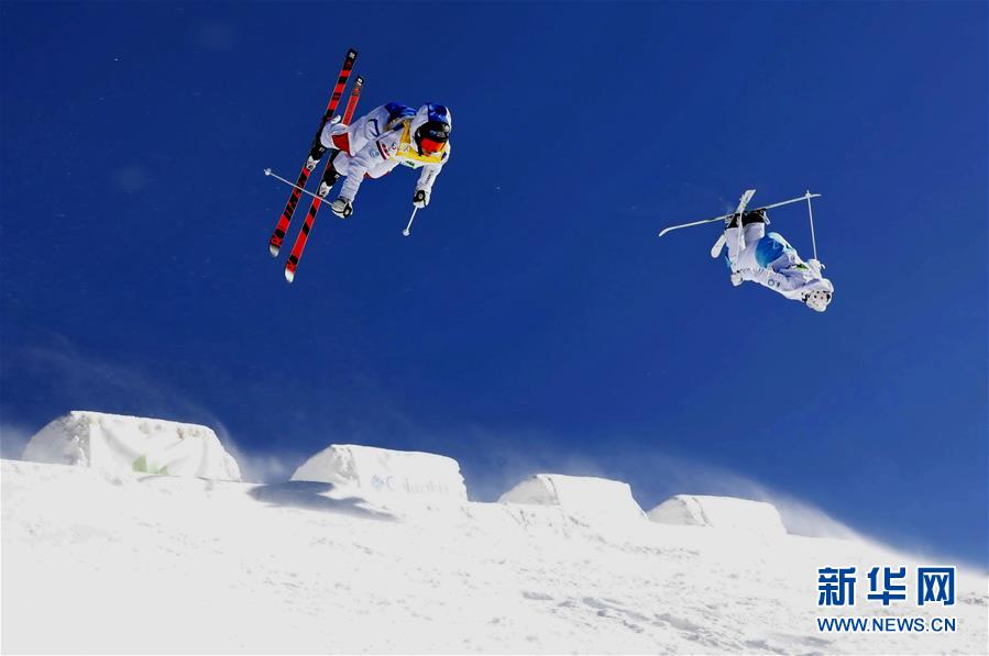 這是運(yùn)動(dòng)員在張家口市崇禮區(qū)太舞滑雪場(chǎng)參加自由式滑雪雪上技巧世界杯比賽(2018年12月16日攝)。
