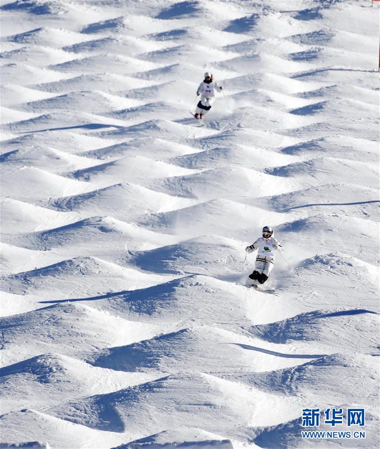 這是運(yùn)動(dòng)員在張家口市崇禮區(qū)太舞滑雪場(chǎng)參加自由式滑雪雪上技巧比賽(2018年12月14日攝)。 新華社記者楊世堯攝