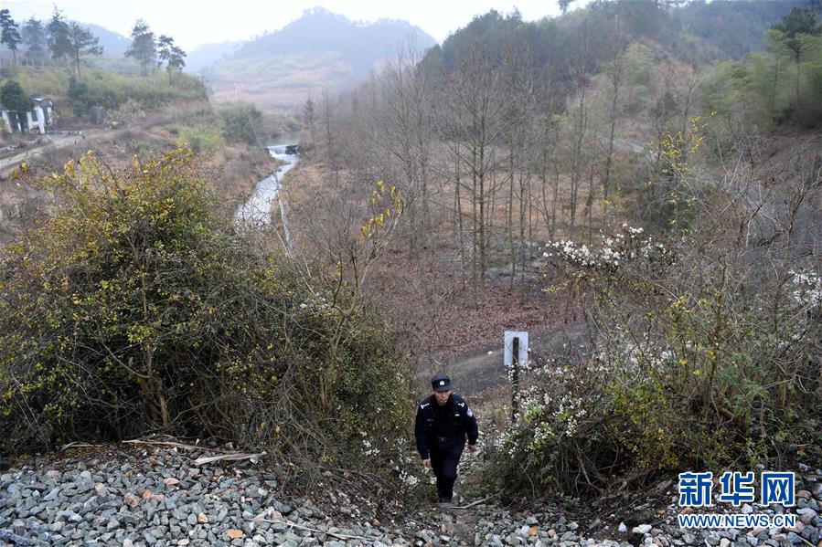 1月16日,汪茂才一早搭乘鐵路通勤車前往十公里外的三昆站,然后往回徒步巡查鐵路線。 今年52歲的汪茂才是合肥鐵路公安處黃山站派出所歙縣警務(wù)室的一名線路民警,他所在的警務(wù)室負(fù)責(zé)皖南山區(qū)皖贛鐵路線約80公里范圍內(nèi)的線路安全。從警30年來,線路巡查、鐵路安全知識宣傳等是汪茂才的日常工作。多年來的徒步巡線,讓汪茂才練就了一雙快腿,十公里的路,汪茂才兩個小時就能走完。 汪茂才負(fù)責(zé)的鐵路沿線周邊村莊較多,很多房子都是沿鐵路線而建,有些村民為了圖方便,違規(guī)穿越鐵路線。加強(qiáng)對鐵路沿線居民的安全宣傳教育,成為汪茂才的一項(xiàng)重要工作,沿線村民的安全意識也越來越高。 對汪茂才這樣的線路民警來說,大多數(shù)時候都是“獨(dú)行俠”,“當(dāng)線路民警就要耐得住寂寞,守得住孤獨(dú),與大山為伴,與線路為友,盡己所能,為鐵路安全運(yùn)行保駕護(hù)航。”汪茂才說。 新華社記者劉軍喜攝