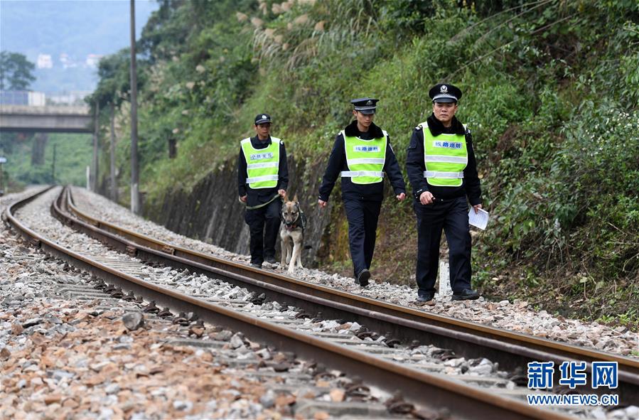 陸日峰(前)和同事在中越邊境巡線(2018年12月31日攝)。陸日峰是南寧鐵路公安處憑祥站派出所民警,中越國(guó)際客運(yùn)列車開行10年,他就守護(hù)了10年。十年來,他平均每3天要到中越鐵路交界點(diǎn)的湘桂線鐵路終點(diǎn)巡線。