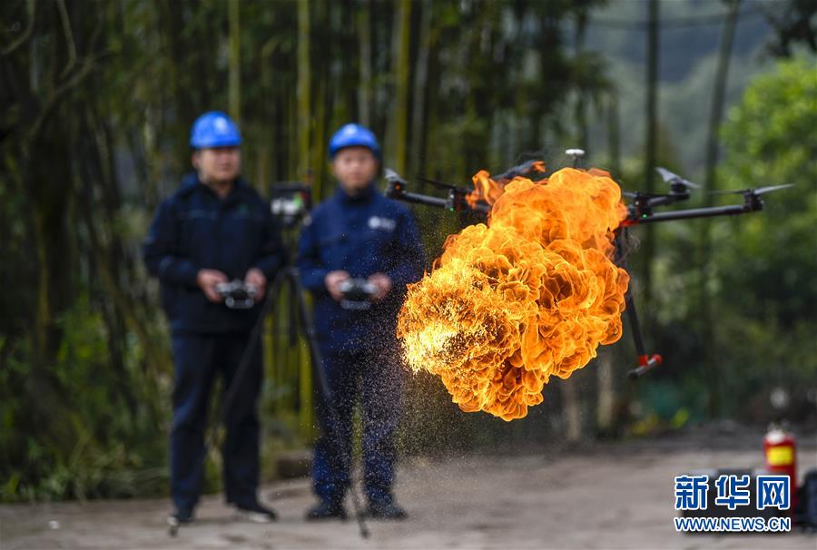 1月16日,噴火清障無人機在國網(wǎng)重慶永川供電公司無人機班兩名操作手的控制下進行噴火清障作業(yè)演示。 1月16日,經(jīng)過3年多的研發(fā)和測試,重慶首臺噴火清障無人機在國網(wǎng)重慶永川供電公司無人機班正式投用。這臺多旋翼無人機,通過搭載帶有燃料箱、油泵、自動點火裝置的噴火吊艙任務(wù)模塊,可以對影響高空電力線路安全的飄掛物進行定點障礙清除作業(yè)。 據(jù)噴火清障無人機研發(fā)負(fù)責(zé)人何濤介紹,過去高空清除異物主要靠人工進行,為保證安全經(jīng)常需要停電作業(yè),因此他們結(jié)合實際工作經(jīng)驗和高空電力線路的自身特點,設(shè)計和制造出了噴火清障無人機。2018年測試期間,國網(wǎng)重慶永川供電公司無人機班在多種環(huán)境下成功執(zhí)行了50多次高空電力線路清障作業(yè)。 新華社記者 劉潺 攝
