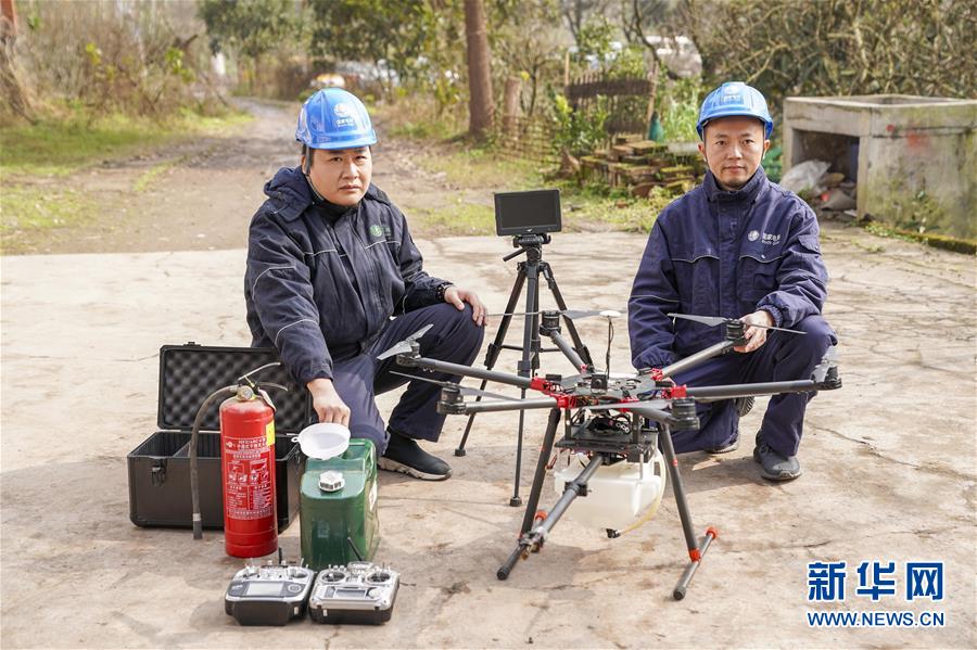 1月16日,噴火清障無人機的研發(fā)負責人何濤(右)和同事晏新展示噴火清障無人機。 1月16日,經(jīng)過3年多的研發(fā)和測試,重慶首臺噴火清障無人機在國網(wǎng)重慶永川供電公司無人機班正式投用。這臺多旋翼無人機,通過搭載帶有燃料箱、油泵、自動點火裝置的噴火吊艙任務模塊,可以對影響高空電力線路安全的飄掛物進行定點障礙清除作業(yè)。 據(jù)噴火清障無人機研發(fā)負責人何濤介紹,過去高空清除異物主要靠人工進行,為保證安全經(jīng)常需要停電作業(yè),因此他們結合實際工作經(jīng)驗和高空電力線路的自身特點,設計和制造出了噴火清障無人機。2018年測試期間,國網(wǎng)重慶永川供電公司無人機班在多種環(huán)境下成功執(zhí)行了50多次高空電力線路清障作業(yè)。 新華社記者 劉潺 攝