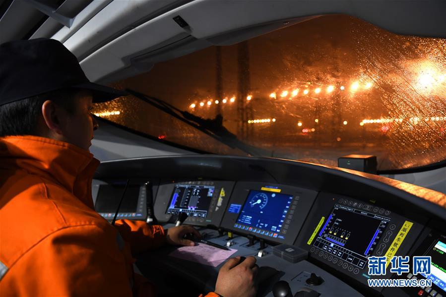 1月29日,王瑞在動(dòng)車上進(jìn)行調(diào)車作業(yè)。新華社記者劉軍喜攝
