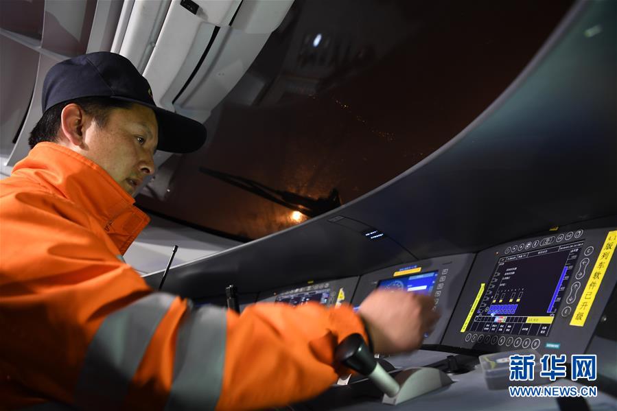 1月29日,王瑞在動(dòng)車上進(jìn)行調(diào)車作業(yè)。新華社記者劉軍喜攝
