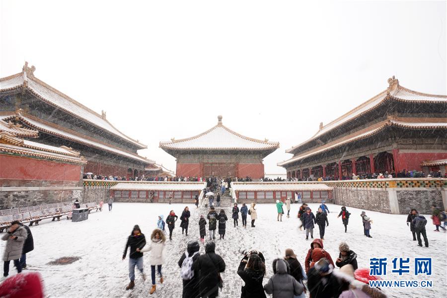 2月14日,游客在雪中游覽北京故宮。 當(dāng)日,北京降雪,大批游人來(lái)到故宮游覽賞雪。 新華社記者 鞠煥宗 攝