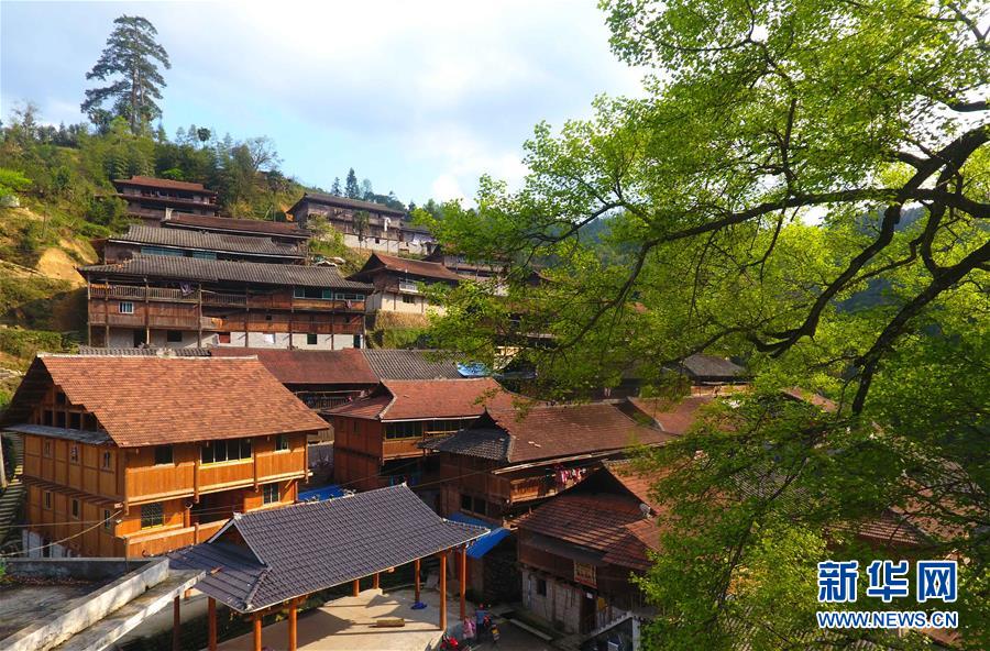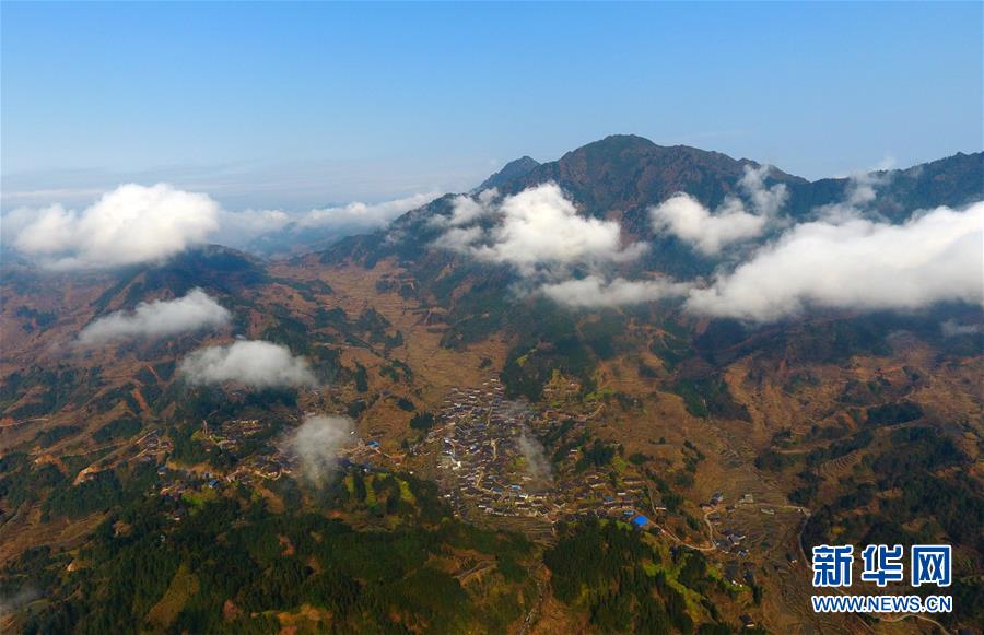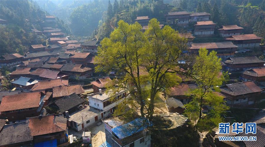 這是黔桂烏英苗寨春色(3月20日無(wú)人機(jī)拍攝)。