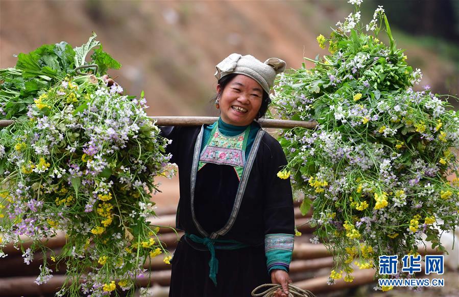 在黔桂烏英苗寨,村民勞作歸來(lái)(3月26日攝)。
