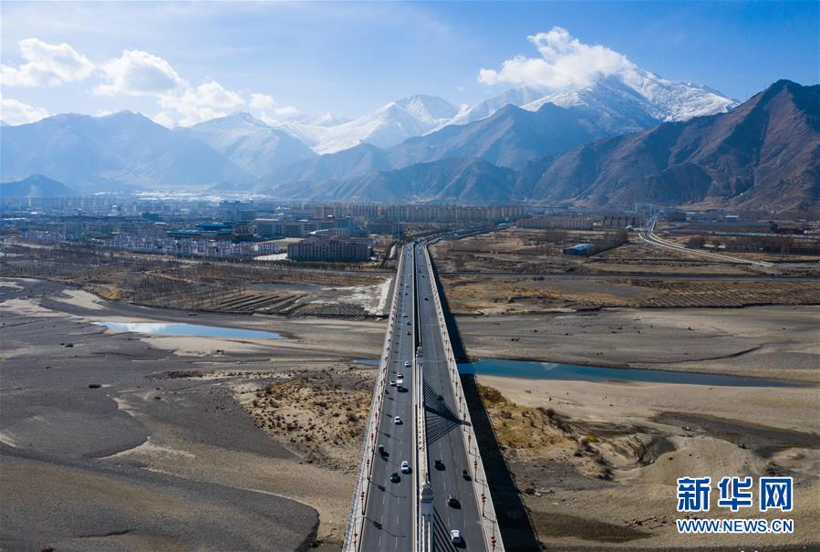 這是拉薩市內公路(4月3日無人機拍攝)。 新華社記者 普布扎西 攝