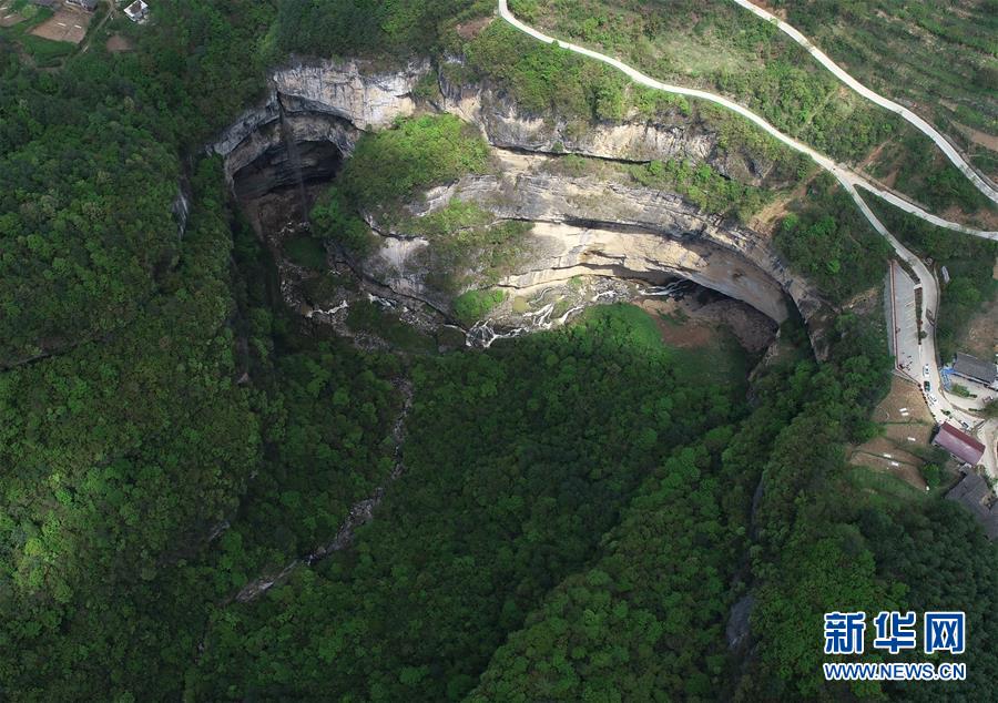 這是4月22日在陜西省漢中市寧強(qiáng)縣火石子村用無人機(jī)拍攝的地洞河天坑。位于陜西省漢中市寧強(qiáng)縣的地洞河天坑,是禪家?guī)r天坑群中規(guī)模最大的一處天坑,坑內(nèi)分布有石鐘乳、石筍,具有極高的地質(zhì)研究?jī)r(jià)值。 新華社記者 張博文 攝