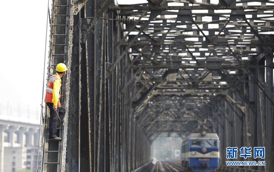 中國鐵路成都局有限公司重慶工務(wù)段的巡檢班組在白沙沱長江大橋上等待機(jī)車通過后繼續(xù)作業(yè)(4月23日攝)。 4月23日下午5點(diǎn)40分,隨著重慶白沙沱長江大橋通行的最后一列客運(yùn)列車順利通過,這座“服役”了59年的重慶首座長江大橋進(jìn)入“退役”倒計(jì)時。4月24日后,所有列車將改線經(jīng)距白沙沱長江大橋約100米的新白沙沱長江特大橋通行,新橋“接力”老橋,運(yùn)輸能力將得到大幅提升。 白沙沱長江大橋于1958年開工,1960年通過首趟列車,是繼武漢長江大橋之后的第二座長江大橋。 新華社記者 劉潺 攝