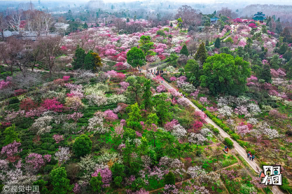 【江蘇南京梅花山中國最大梅園】南京梅花山,有“天下第一梅山”之譽,與上海淀山湖梅園、無錫梅園和武漢東湖梅園并稱中國四大梅園,居四大梅園之首。南京梅花山植梅面積達1533畝,梅樹3萬5千余株,品種多達367種,其中國際登錄品種137個。進入三月,由于雨水充沛,溫度適宜,南京梅花山迎來盛花期,花團錦簇引游人。