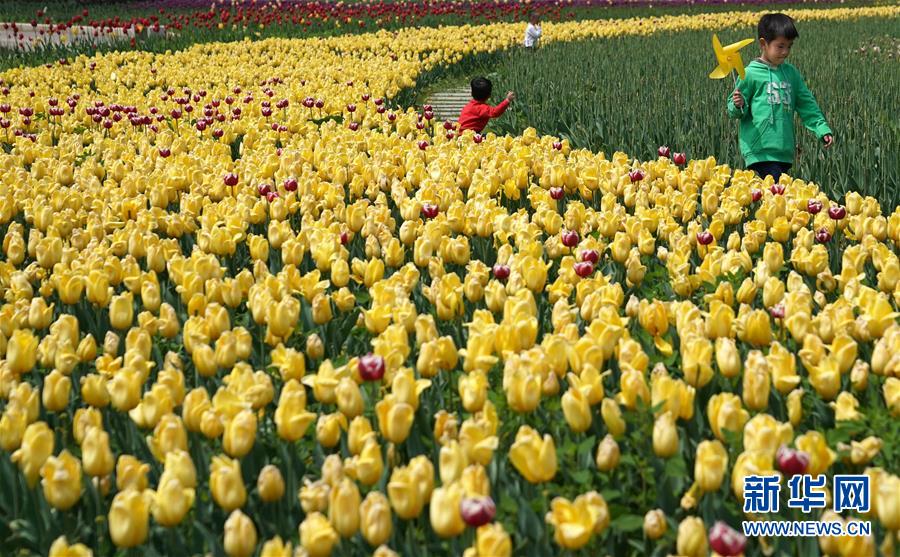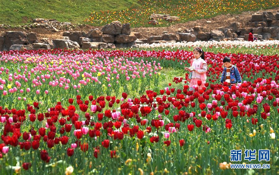 4月14日,游客在位于湖北省十堰市茅箭區(qū)的秦巴生態(tài)植物園內游玩。近日,位于湖北省十堰市茅箭區(qū)的秦巴生態(tài)植物園內,200萬株郁金香競相開放,吸引游客前來賞花游覽。 新華社記者 程敏 攝