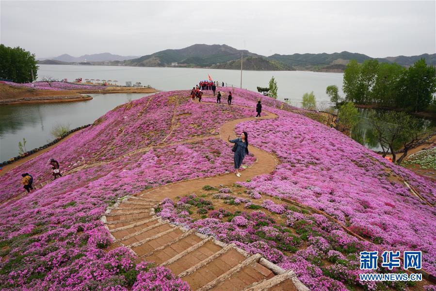 4月24日,游人在雨花谷景區(qū)游覽。近日,河北省遷西縣雨花谷景區(qū)的芝櫻花盛開,吸引游客前來觀賞。 新華社記者 楊世堯 攝