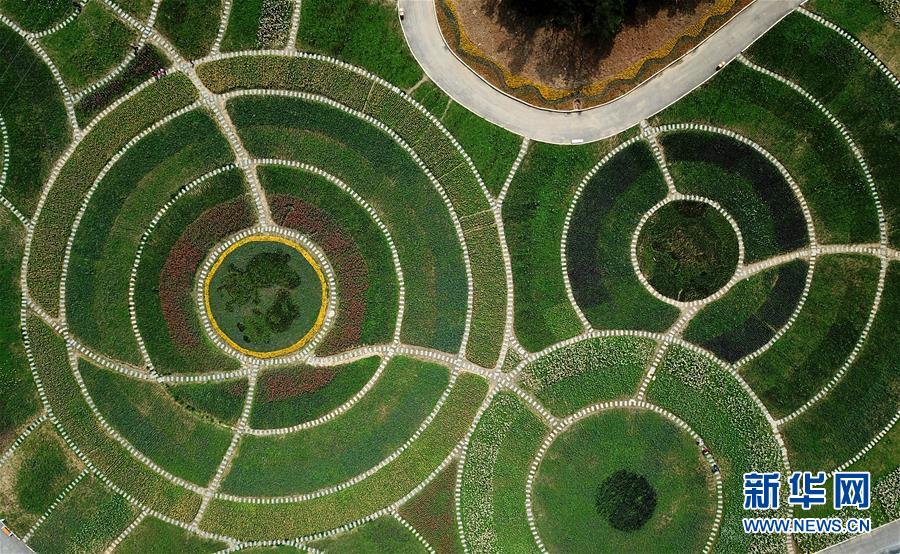 這是4月14日無人機拍攝的湖北省十堰市茅箭區(qū)的秦巴生態(tài)植物園。近日,位于湖北省十堰市茅箭區(qū)的秦巴生態(tài)植物園內,200萬株郁金香競相開放,吸引游客前來賞花游覽。 新華社記者 程敏 攝