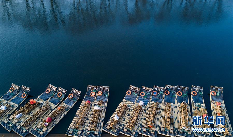 這是福建省武夷山風(fēng)景名勝區(qū)九曲溪邊??康闹穹ぃ?月11日無(wú)人機(jī)拍攝)。 新華社記者 宋為偉 攝