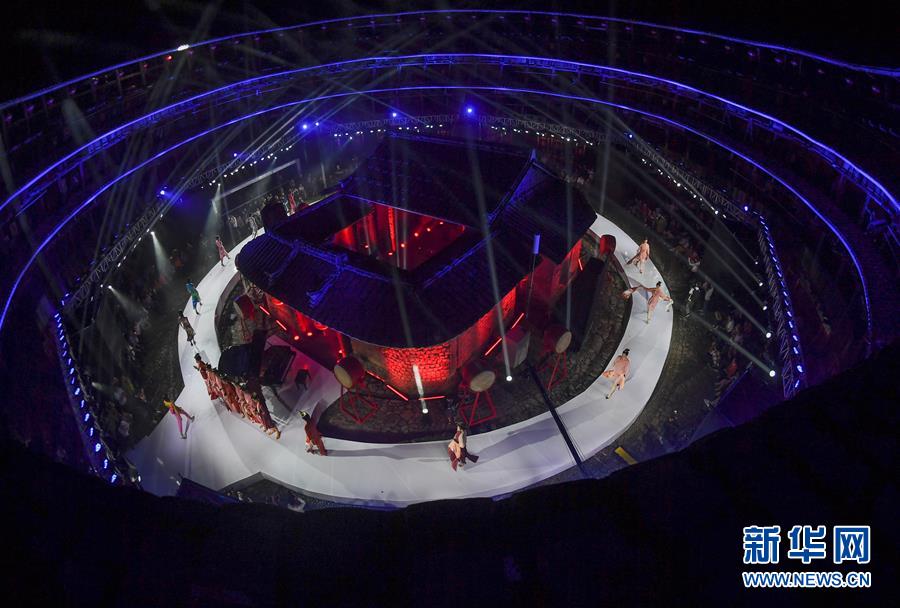 4月27日,表演結(jié)束后,模特在向觀眾致意。 當(dāng)日,土樓光語國際時尚大秀在福建省南靖縣的土樓裕昌樓內(nèi)舉行。這場融匯文化、時尚與旅游元素的大秀,通過傳統(tǒng)與時尚的有機(jī)融合,展現(xiàn)南靖土樓及文化的魅力和風(fēng)采。 新華社記者魏培全攝