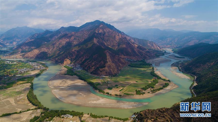 這是無人機拍攝的“長江第一灣”一景(3月17日攝)。“長江第一灣”位于云南省麗江市玉龍納西族自治縣石鼓鎮(zhèn),萬里長江從青藏高原奔騰而下,與瀾滄江、怒江一起在橫斷山脈的高山深谷中穿行形成并流的壯麗景觀。金沙江在麗江石鼓鎮(zhèn)突然以急轉(zhuǎn)彎轉(zhuǎn)向東北,形成一個宛若“V”字形的大轉(zhuǎn)彎,得名“長江第一灣”。春日里,“長江第一灣”江水青碧,美景迷人。 新華社記者胡超攝