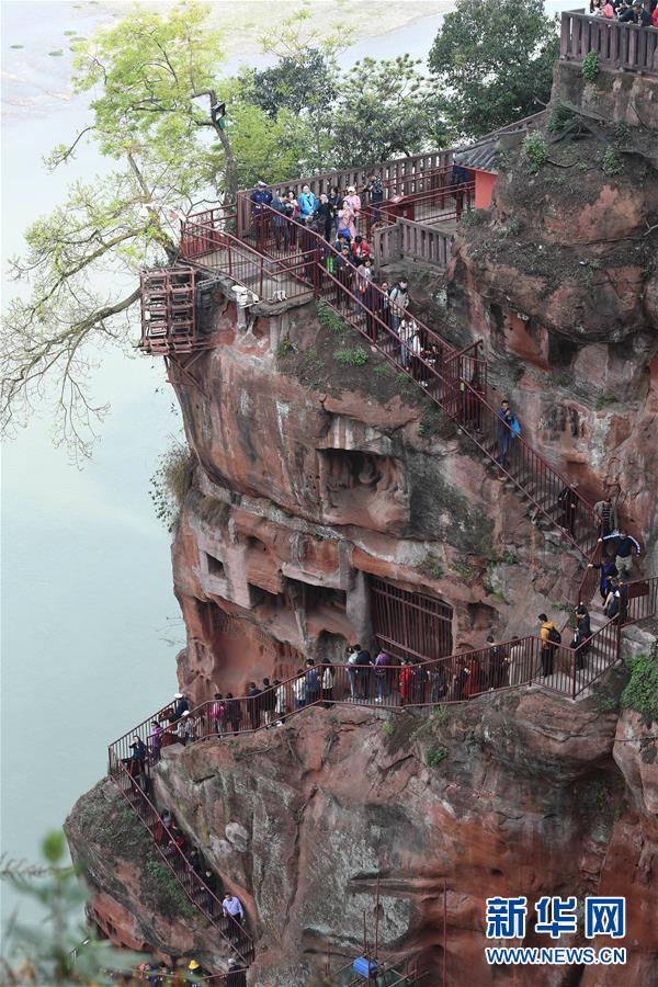 4月1日,樂(lè)山大佛景區(qū)的九曲棧道重新對(duì)游客開(kāi)放。新華社記者 江宏景 攝