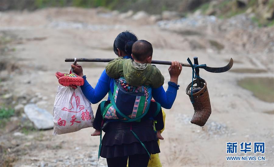 在黔桂烏英苗寨,村民勞作歸來(lái)(3月18日攝)。 新華社記者 黃孝邦 攝