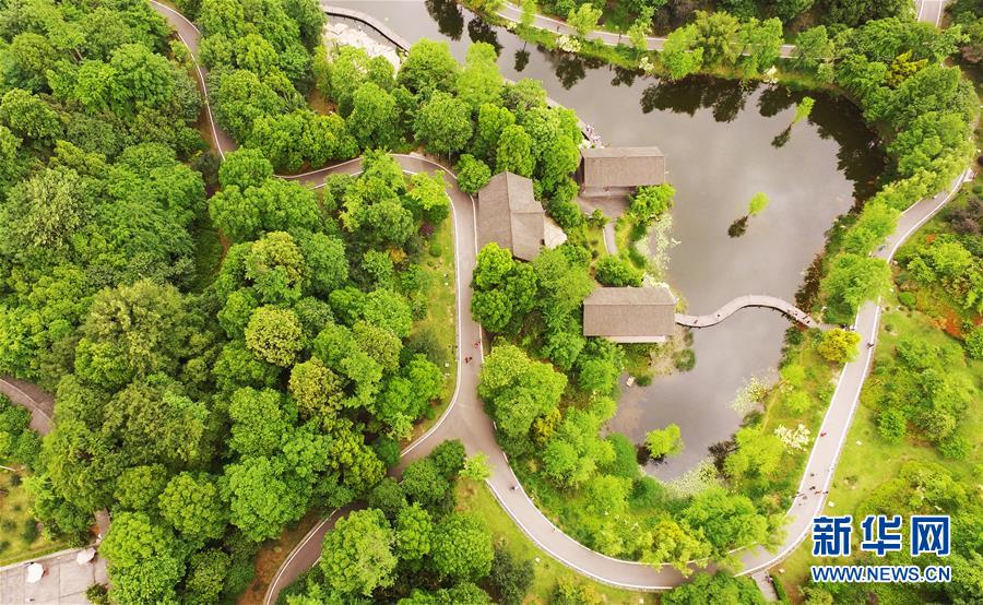 這是5月1日無(wú)人機(jī)拍攝的重慶璧山觀音塘濕地公園景象。新華社記者 王全超 攝
