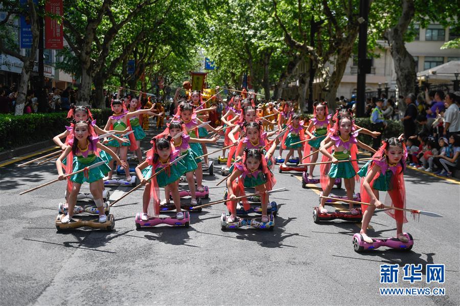 5月4日,演員裝扮成各種動(dòng)漫形象在巡游隊(duì)伍中表演。當(dāng)日,第十五屆中國(guó)國(guó)際動(dòng)漫節(jié)彩車巡游活動(dòng)在浙江杭州南宋御街中北創(chuàng)意街區(qū)舉行。巡游表演隊(duì)伍約500米長(zhǎng),由4輛大型動(dòng)漫彩車、1輛小火車及400多名演員組成。新華社記者 黃宗治 攝