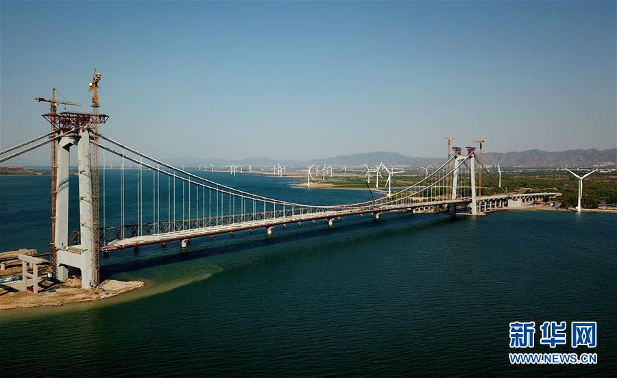 5月7日,工人在官廳水庫公路大橋上施工。 河北省懷來縣官廳水庫公路大橋是懷來沙城至東花園公路的節(jié)點工程,預(yù)計該橋?qū)⒂?019年6月竣工。 新華社記者 楊世堯 攝