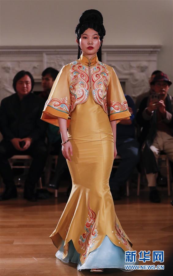 5月8日,一名模特在英國倫敦走秀。 由浙江省文化和旅游廳舉辦的浙江傳統(tǒng)工藝創(chuàng)新展8日在倫敦開幕。為期4天的展覽是第五屆倫敦手工藝周的重要活動(dòng)之一。 新華社記者 韓巖 攝