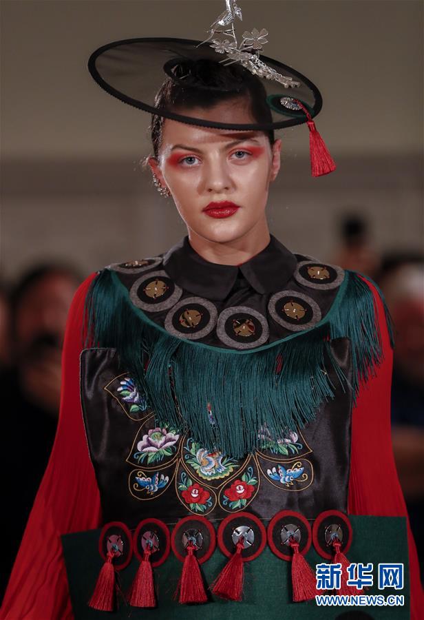 5月8日,一名模特在英國倫敦走秀。 由浙江省文化和旅游廳舉辦的浙江傳統(tǒng)工藝創(chuàng)新展8日在倫敦開幕。為期4天的展覽是第五屆倫敦手工藝周的重要活動(dòng)之一。 新華社記者 韓巖 攝
