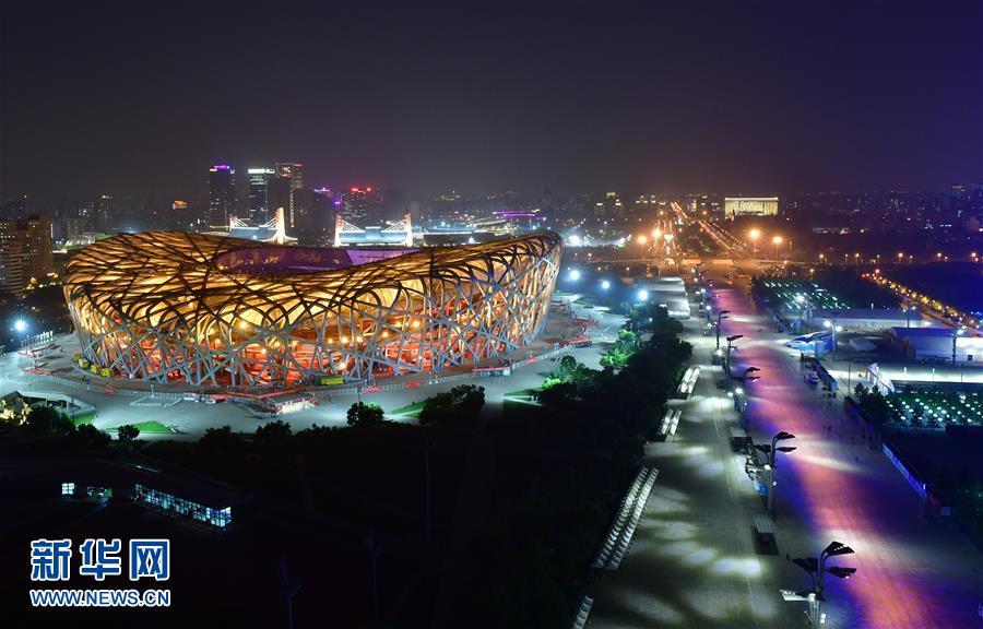 “鳥巢”燈光璀璨(5月14日攝)。 當(dāng)晚,一場“空間光影秀”在北京上演。 新華社記者 李賀 攝