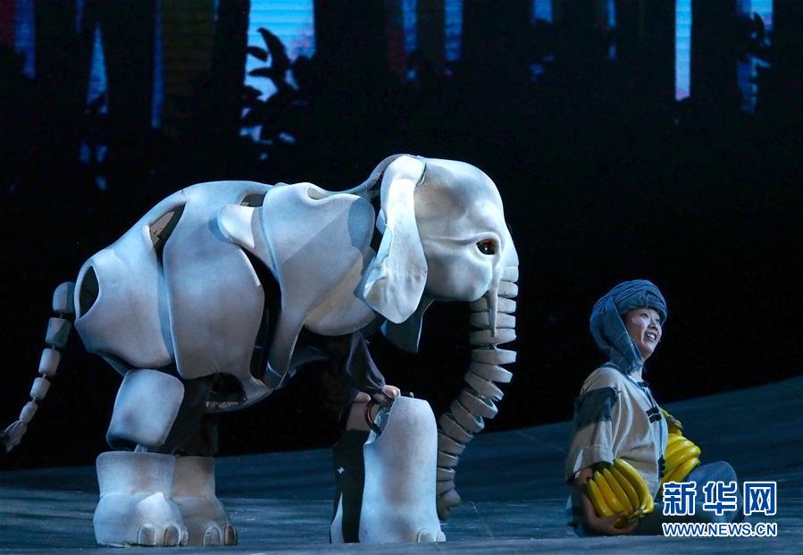 5月15日在上海美琪大戲院拍攝的新版大型人偶舞臺(tái)劇《最后一頭戰(zhàn)象》劇照。 當(dāng)日,作為第12屆中國(guó)藝術(shù)節(jié)的參演劇目,大型人偶舞臺(tái)劇《最后一頭戰(zhàn)象》在經(jīng)過4次硬件技術(shù)升級(jí)和故事修改后亮相上海美琪大戲院。 新華社記者 任瓏 攝