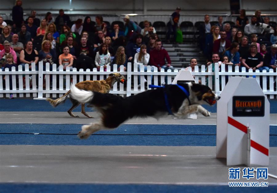 5月19日,在德國多特蒙德舉行的寵物展上,兩只狗狗參加速度競賽。 為期三天的德國多特蒙德“狗和貓”寵物展19日落幕。寵物展期間,人們帶著自己的“萌寵”來到會(huì)場,參與寵物跳水、舞蹈、選美等趣味比賽,并與其他寵物愛好者及展商交流互動(dòng)。 新華社記者逯陽攝
